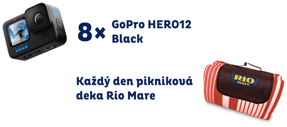 Výhru tvoří 8x GO Pro Hero12 Black a 61x pikniková deka Rio Mare.